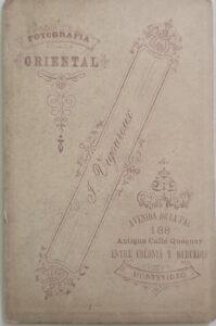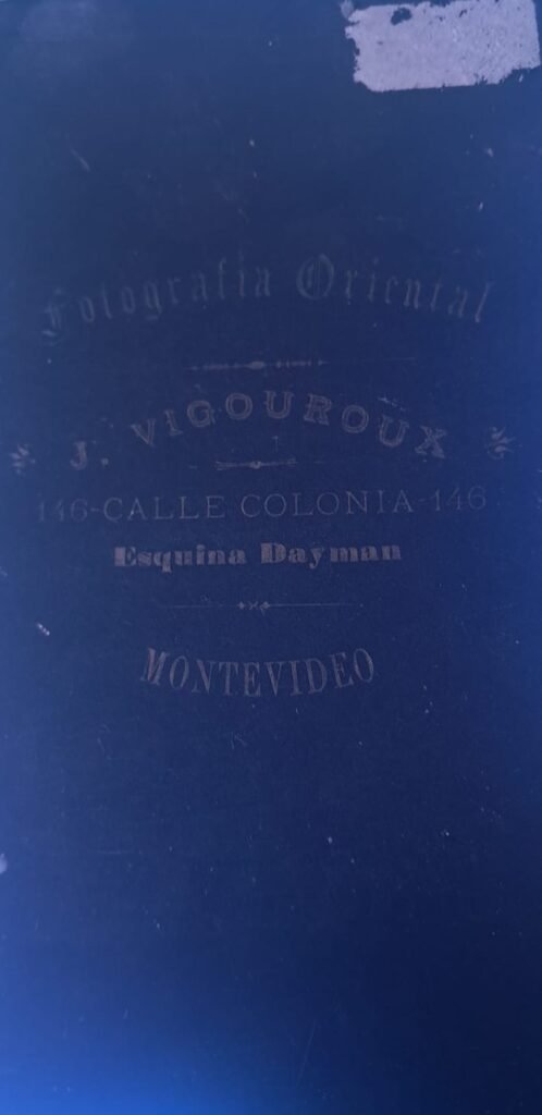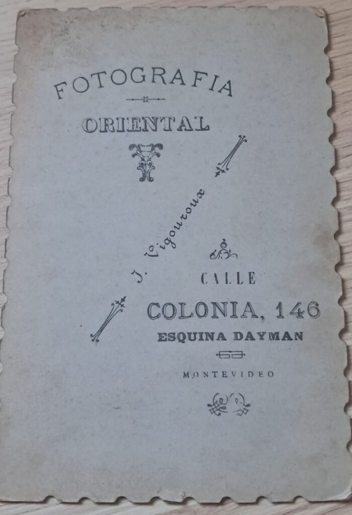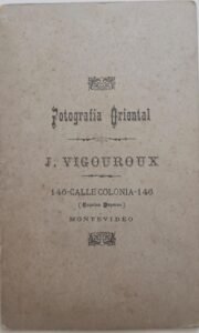 - Anverso (inferior): “Fotografía Oriental – J. Vigouroux – Calle Colonia 146 – MONTEVIDEO”