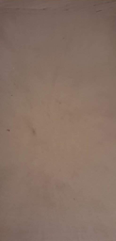 Regular. Presenta manchas de oxidación y foxing en ambas caras, desvanecimiento de la emulsión en áreas claras y pérdida de contraste general. El cartón mantiene rigidez estructural, aunque con bordes suavemente desgastados.