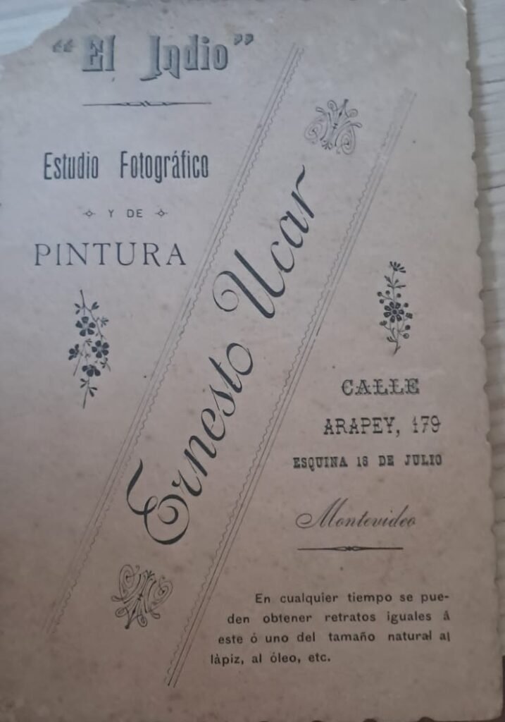“El Indio – Estudio Fotográfico y de Pintura Ernesto Ucar – Calle Arapey 179 esquina 18 de Julio – Montevideo.