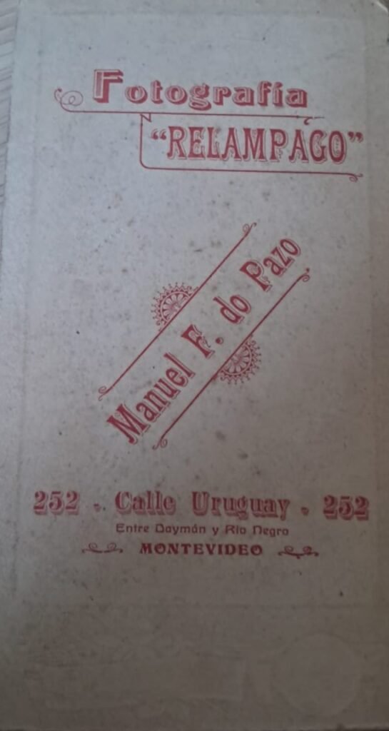 “M. F. do Pazo – Fot. Relámpago – Calle Uruguay 252 – Montevideo” - Reverso: