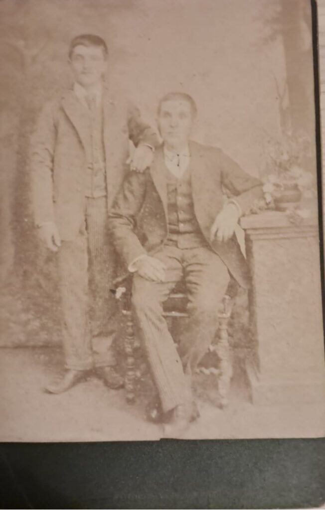 Fecha estimada: ca. 1900–1910 (según el vestuario, el montaje de estudio y el diseño gráfico del soporte)