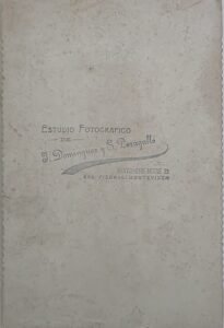 “Estudio Fotográfico de J. Domingues y S. Peragallo / Bartolomé Mitre esq. Piedras / Montevideo.”