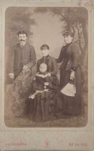 El retrato responde a un formato habitual de fines del siglo XIX, en el que se inmortalizaban grupos familiares con vestimenta formal. La inclusión de una abanico como accesorio femenino es típica del retrato burgués y puede estar vinculada al estatus social o al simbolismo de feminidad y elegancia. El fotógrafo J. Vigouroux formó parte del circuito activo de retratistas en Montevideo.